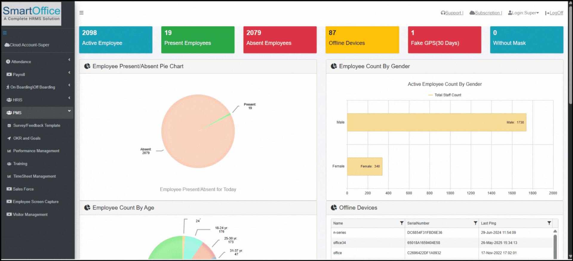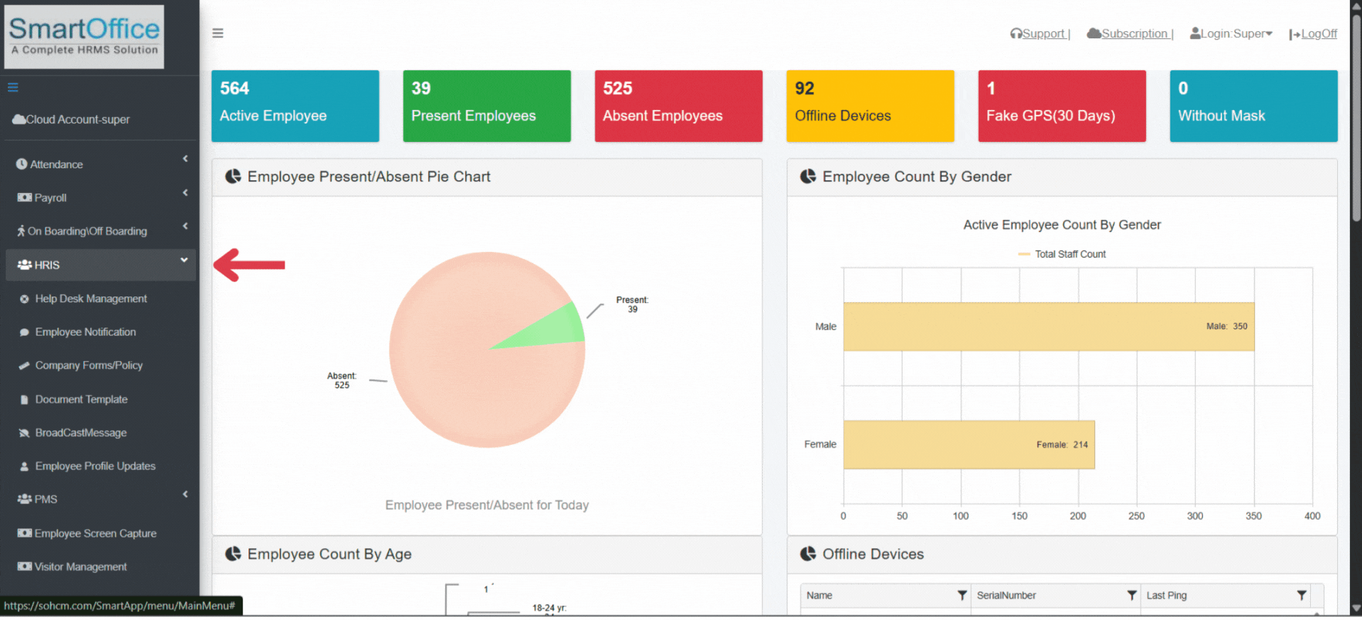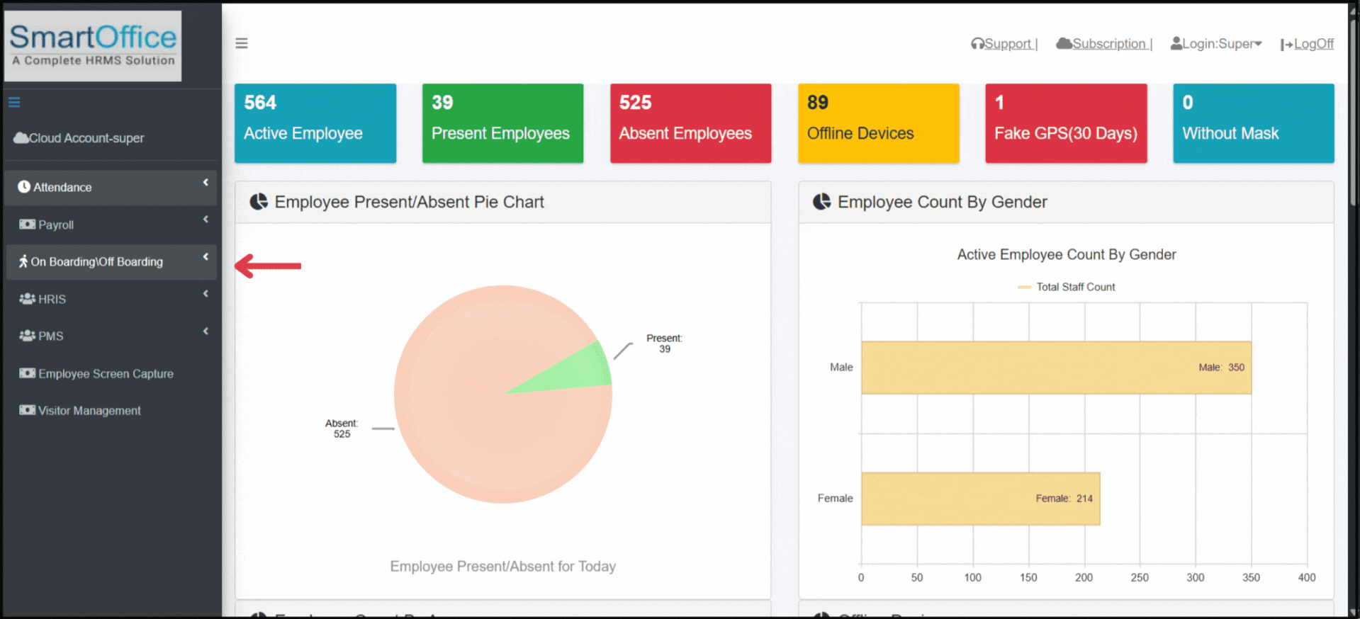 a. Total Employee Count: Displays total employees based on filters like Department, Branch, Team, and Grade.