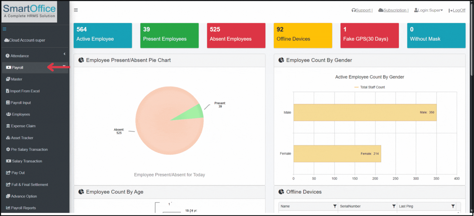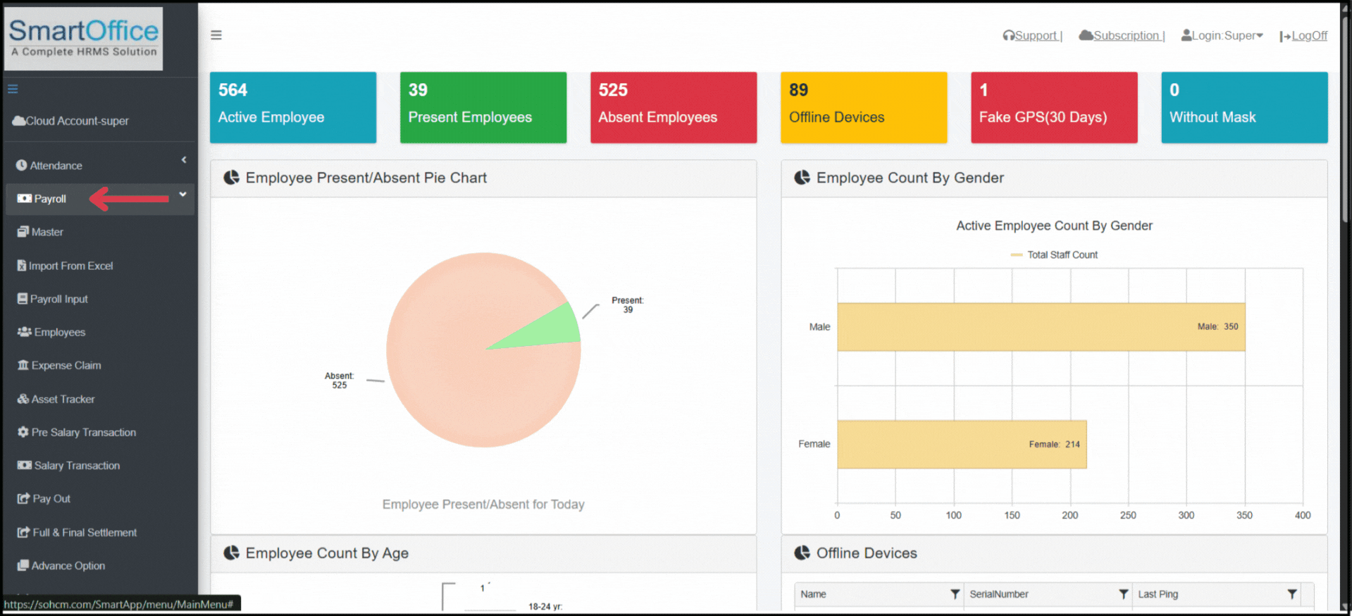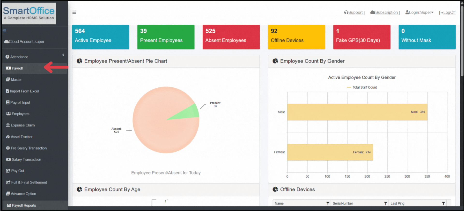 a. Total Employee Count: Displays total employees based on filters like Department, Branch, Team, and Grade.
